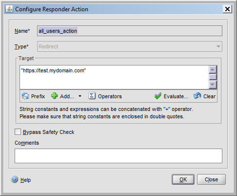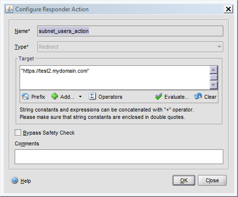 Now create a policy that will match the url test.mydomain.com and will redirect users from the 10.10.20.0/24 to test2.mydomain.com